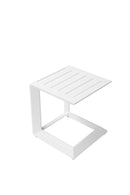 Stylish and sleek this modish white side table is following minimilast design patterns and embracing modernism. Exceptionally fine lined side table is inspired by a contemporary ideas of cutting excess. With a fine sleek and slender body this outdoor furniture will upscale your patio or outdoor settings. Its framework of this table has been constructed of Anodized Aluminum frame. Place it in your garden, terrace, patio, backyard for transformed look and adorn it with your essentials. Dimensions: 20 in. L x 17 in. W x 17 in. H