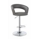 This cool Contemporary One-Piece faux leather bar Stool will be a stylish addition to your casual dining and entertainment area. The plush curved stool back and seat are covered in a rich faux leather in grey to complement your taste. A shiny steel base with a high polished chrome finish supports the Stool, with an adjustable height mechanism and round footrest below for comfort. Transform your home into a fun hangout with this stylish bar stool.