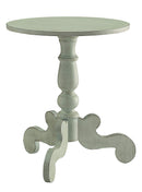 Get cozy on a quiet evening with this elegant Freida side table. Featuring turned pedestal base the three "S" shaped stylized legs, the table is offered in antique green finish. Take a step into the world of with this beautiful, vintage style side table.