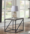 Industrial Style Minimal End Table With Wooden Top And Metallic Base, Gray