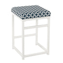 This elegantly designed counter stool would be a perfect addition to your living space. The white color metal framework provides durability and sturdiness to the counter stool. The fabric upholstered seat provides utmost comfort. The blue and white color geometric designed padded seat is very eye appealing. The sled style base enhances its overall look and also provides stability to the piece. The counter stool can be used as additional seating, or paired up with counter tables. It would surely add character to your home.