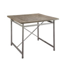 Distinctive, classic and modern counter height table. with a contemporary touch to enhance the interiors of your living space, this metal and wood crafted counter height table bears a gray finish. Sporting wooden grooved top and metal legs, this table bears a rectangular shape and makes for an elegant piece of furniture for your living space. Other featured items in image are sold separately.