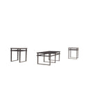 Add a monochromic look to your living space with the inclusion of this occasional table set. Each table features opaque black inserted glass top with a metal framing base in sled design. It is a set of three tables which includes one coffee table along with two end tables. The top of the tables offers you enough space for decorative display of vases, frames and other items. The end tables can easily be used as a side table aside any sofa or chair whereas the coffee table is brilliantly designed to provide a great seating space when accompanied by sofa.