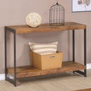 A warm accent for your rustic and contemporary settings, bring home this sturdy combination of solid wood and solid metal. It exhibits simple crisp lined two toned sofa table that lends a countryside contemporary look. The Antique Nutmeg Brown and black finish this table creates a modern and transitional appearance to adorn your interiors. Its U shaped metallic base also displays a lower bottom shelf which completes its modern look with effortlessness.