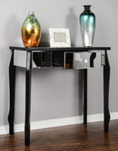 Modern Console Table - 35'.5" X 13" X 31" Black MDF, Wood, Mirrored Glass Console Table with Mirrored Glass Inserts and a Drawer
