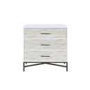Patterned Three Drawers Wooden Console Table with Metal Base, White & Black
