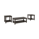 Bring cottage style charm to your living space with this plank style table set that reflect sheer sophistication. It is a set of three tables which includes one coffee table along with two end tables in black finish. Each table is made from pine veneers, wood and engineered wood, featuring slatted lower shelf that offers great space for an organized storage and decorative displays. Supported on bun feet, the coffee table can be used as a center table whereas the two end tables provide a great place aside any sofa or chair.