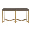 This console table can be an innovative inclusion in your home setting. This dual tone finish table features such innovative design and style. This has a flat resin rectangular top which space you can use it for many things. This will serve its purpose to the most as it is a regular table with a complete new look to give home solution a beautification. Sturdily constructed, this table has metal feet connected each other through a crossed design giving it sturdiness. Its clean lines making this a wonderful addition to any home.
