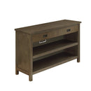 This transitional style table will make a connection between traditional details and modern designs to make it useful in the present life. This vintage brown finish wooden console table is very sturdy. It features two spacious drawers with metal pull handles and two open shelves which can be used keep living room linens, small jars containing eatables for guests and other items. It features a cut holes for cord management. Also, the top of the table can be adorn with small vases, lamps, photo frames, decorative trays. It a perfect furniture item for your living room, hallway making them more comprehensive and stylised.
