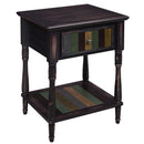 An quality product that can change the whole complexion of the place it has been put in. This kind of stylish side tables likely shows up for every moment possible. It is made of wood with an unique design and brown color finish, comes with durable solid wooden turned legs with adjustable feet and multi color boards that form up an effective storage space accented with a colorful drawer for keeping the extra accessories or small things in it.The table is truly one of a kind and can be used in your living space to keep decorative items, placing remotes and beverages while the bottom shelf provides great storage to magazines, books and other related items.