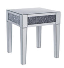 Wood and Mirror End Table with Faux Crystals Inlay, Clear