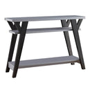 Wooden Console Table With 2 Lower Shelves, White And Distressed Gray