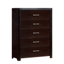 The proportions strike the perfect balance between storage space and a compact footprint. This sturdy chest with 5 drawers is unassuming stylish. It can easily be turned into a dresser just by adding a mirror to it. The sleek silver handles provides easy opening while the espresso(brown) finish makes it stand out.