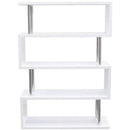 Bring home an aesthetic charm with this shelving unit in geometric design. Inspired from modern design, the rectangular MDF shelves are supported on tubular stainless steel in chrome finish. It has a white lacquer finish that easily blends with all decor styles while providing a sophisticated look to your ambiance. The four open shelves can be used for stowing vases, figurine, books and decorative items. It makes a great piece for adorning your living room, study room and office spaces.