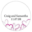 This stationery collection is bold and not for the faint of heart. Don't be afraid to express your heartfelt love and the excitement of your big day with this contemporary design.Add instant personality to small tins, favor containers or even envelopes with this delightful sticker. Available in two sizes for added flexibility. material - glossy vinyl adhesive imperial - 1.5" dia metric - 3.8cm dia