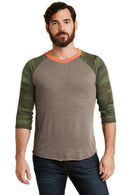 High-impact color combinations leave a high-impact impression in this tee that's a study in contrast and comfort. 4.13-ounce 50/38/12 poly/Cotton rayon 50% polyester (6.25% recycled) 38% Cotton (6.25% organic) 12% rayon Classic fit Contrast raglan sleeves Slight shirttail hemEcoJersey fabric infuses each garment with unique character. Please allow for slight color variations.