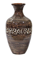 Tall Vase - 10'.7" X 10'.7" X 20" Distressed Brown W/ Brown Coconut Shell Bamboo Spun Bamboo Vase
