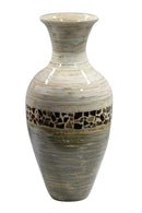 Tall Vase - 10'.7" X 10'.7" X 20" Distressed White And Green W/ Coconut Shell Bamboo Spun Bamboo Vase