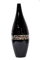 Tall Vase - 10'.7" X 10'.7" X 31'.5" Black Lacquer W/ Brown Coconut Shell Bamboo Spun Bamboo Floor Vase