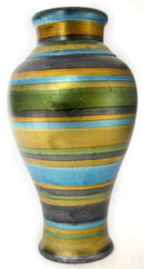 Gold Vase - 10'.75" X 10'.75" X 20" Blue, Green, Gold, Copper And Pewter Ceramic Amphora Floor Vase Ceramic, Satin