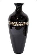 Decorative Vases - 10" X 10" X 24" Black Lacquer W/ Brown Coconut Shell Bamboo Spun Bamboo Stovepipe Vase