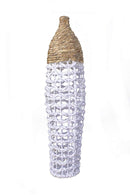 Tall Floor Vases - 11" X 11" X 38" White And Natural Water Hyacinth Water Hyacinth Woven Floor Vase
