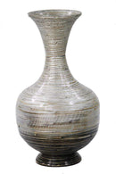 Tall Vase - 12" X 12" X 22" Distressed Silver And Black Bamboo Spun Bamboo Vase