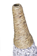 Tall Floor Vases - 12" X 12" X 38" White And Natural Water Hyacinth Water Hyacinth Woven Floor Vase