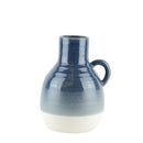 Bellied Jug Shape Ceramic Vase with Ribbed Pattern, Large, Blue and White