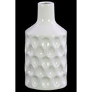 This white gloss finished ceramic decorative Bottle Vase with short neck are made of the finest ceramics with engraved teardrop design which makes them tactile and attractive. This round vase will not only be the focal point of any room or space, but will also be a conversation piece with it?s white color. It is primarily designed to accentuate your home, garden or virtually any space. It can also be a perfect gift for every occasion! Dimensions: 5.00in x 5.00in x 10.25in