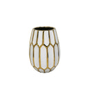 Brimming with elegance, this Curved Vase will add a touch of modern charm to your home dcor. The vase is made from high-quality ceramics in a contrasting white and gold finish and it features a geometric bud design for added visual interest. Use this vase to display flowers or use it on a console table, book shelf, entryway and in any room of your home as a perfect standalone accent piece.
