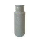 Bring this cylindrical vase to make your home look unique and more exclusive. Featuring a ribbed texture and glossy light gray finish. This vase has curved top rim and round base design to protect it from falling. Made up of ceramic, it designed in cylindrical shape with a wide mouth top giving it a more traditional look. Potted any choice of plant in this vase to make a desired design and pattern. Simple and attractive this will look great when displayed in living room or hallway area.