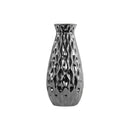 The sensational structure of this bellied vase can get anyone?s attention stuck on its beauty and alluringness. Crafted from ceramic, the vase features LG polished silver chrome finish along with embossed wave designing on the body. The round vase will draw impressive statements with its appeal.