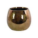 Preserve the sanctity of your flowers with this striking ceramic round vase. Carrying a hammered finish, this appealing vase bears a polished chrome finish antique brass color, giving it a vintage touch.