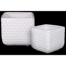 Get creative with beautiful flowers in an array of rich greens by adding this set of 2 square shaped vases to your living space. These are made up of ceramic and has engraved diamond pattern on its body along with smooth curvy bottom that gives it a good stability. These vases bear a glossy white finish that accentuates its beautiful construction. Place it on any desk, side table or any where you want to add a focal point.