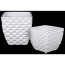 Create double charm in your home with this wondrous set of 2 square vases, featuring an embossed wave design body. It is made up of ceramic and has tapered bottom that gives it a good stability. These vases bear a glossy white finish that accentuates its beautiful construction. Place it on any desk, side table or any where you want to add a focal point.
