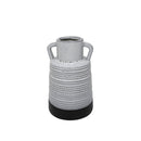 Bring charm to any room in your home with this lovely Table Vase. Constructed from high-quality ceramics in a speckled gloss gray finish with black base, this vase features a horizontal ribbed design on its body and two curved handles on top for visual interest. The vase will surely fill any vacant space and will give a complete balance to the design impact of any room in your home. Besides being perfect for display on your console table, book shelf or entryway.