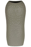 Ceramic Tall Engraved Leaf Design Half-Circle Vase, Large, Gray