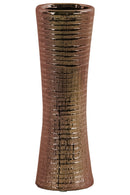 Ceramic Trumpet Mouth And Flared Bottom Ribbed Vase, Distressed Copper Finish