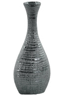 This vase styled with high-design and high-end textures that will add the elegance at your home interior. Made up of ceramic, It features a trumpet mouth, bellied oval long neck characterized by a ribbed texture on body. This vase can put alone or pair with other sizes of vase to complete the look. This vase will look awesome on console tables, book shelves, or any other place that needed an accent, are the perfect places for this.