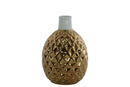 This ceramic round vase with short neck offer modern interior to your home. This is perfect keeper if you like elegance at the corner of your rooms or your side tables. It can be used as artificial pots, flower vase and earthen pots. Fine detailing of engraved double diamond pattern with white banded rimmed top and glossy chrome gold finish enhances the beauty of this vase.