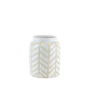 Crackled Textured Ceramic Table Vase with Geometric Pattern, Small, White and Beige