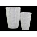 Featuring a glossy white finish and embedded wave design this set of two Decorative Vase is made using the best quality ceramic. The set adds to the landscape of your home with its exquisiteness and is a right choice for gifting to your loved ones. These vase are customized for modern design scheme and can uplift decor of your bedroom/Living room/hall. The design of this set is one-of-a-kind and is a perfect piece of modern art. Dimensions: 6.50in x 6.50in x 9.00in & 5.00in x 5.00in x 7.50in