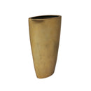 This aluminium vase is shaped like an uneven oval. The unevenness adds abstract appeal to the vase. The solid gold colour makes it appropriate for all kinds of decors. The matte finish adds a rustic appeal to the vase. The vase would add character to your living space. It can be used as a decorative piece on your side table. You can also keep small plants or succulents in the vase and use it as a planter pot.