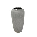 This tapered ceramic vase would be a perfect decorative piece for your living space. Made out of high quality ceramic it would be long lasting. The glossy silver colour adds bling to this piece. The textured pattern adds a grainy look to the vase. The pattern can be felt with your hand. The mouth of the vase is rimmed and smoothened. The vase would be able to hold a number of items. You can keep fresh bouquet of flowers in the vase or keep the vase as a decorative piece on your table.