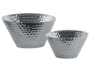 With a unique silhouette, this chic and fashioned set of 2 ceramic vase features a trumpet mouth and round shape with tapered bottom. The vase has been engraved with a intriguing honeycomb or circle like designing on a polished silver chrome finish. With a strong presentable structure this set of vase is a solo decorative by its own right to adorn with or without any decor on it. It will no doubt add dimension to your decor and interiors uplifting your style statement.