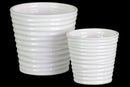 Can be defined as lustrous beauty, this set of 2 vases will elegantly punctuate your dcor setting. The ceramic constructed bodies of these vases feature horizontally ribbed designing along with a glossy white finish. Holding round shapes, the vases are accentuated with tapered bottoms.
