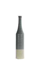 Upscale the presence of any surface with this imposingly designed vase that is shaped in a bottle like structure. Crafted from ceramic, the vase features a narrow mouth, long neck and a cream banded rim bottom. It is accented with a coated silver finish.