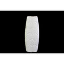 Minimalist in looks, this simple yet very strong in its presence, this oval vase is a beautiful addition to your decor. Desirable and appealing to eyes its white finish matte beauty will enthrall your senses. Crafted and molded excellently by artisans this ceramic vase is accented with embossed hexagonal designing. Just beautify your corners or center piece making it a focal point with or without accent flowers.