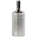 Relive the freshness of florals indoors with this stunning bottle shaped vase, made in ceramic. Pretty as a picture, this piece of art is engraved with a unique criss cross designed body and a smooth elongated neck. Adding to this lovely combination of rough and smooth is the brilliantly polished chrome finish in silver color.